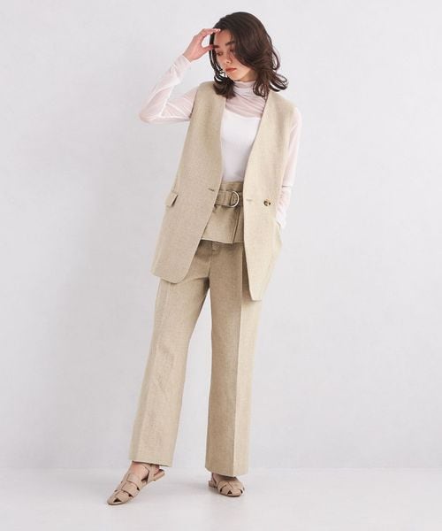 同素材のジレやパンツとのスリーピースのスタイリングがおすすめ。