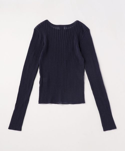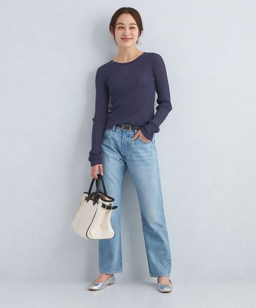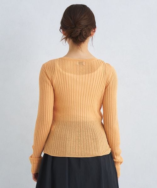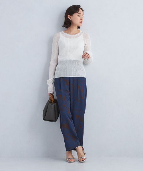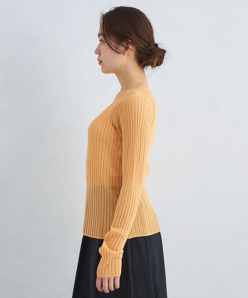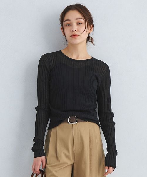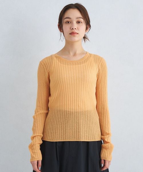 ほどよいシアー感と柔らかな風合いが魅力のクルーネックニット。