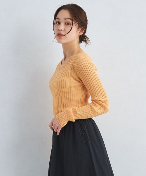 身体のラインを拾いすぎずに優しくフィットするワイドリブで立体感を表現しました。