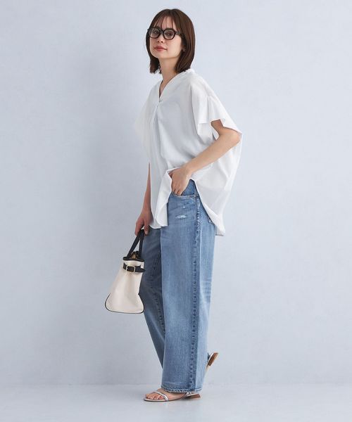 合わせるボトム次第でカジュアルにもきれいめにも雰囲気を変えていただけます。