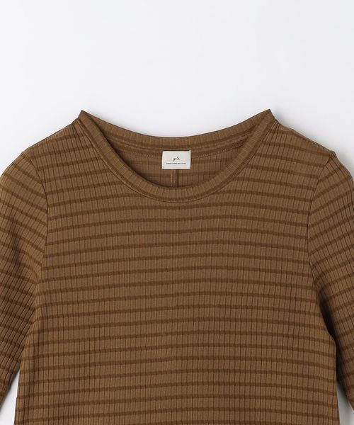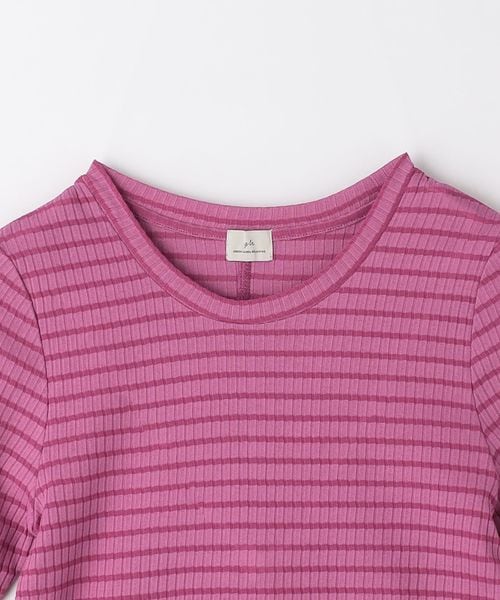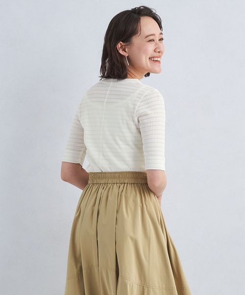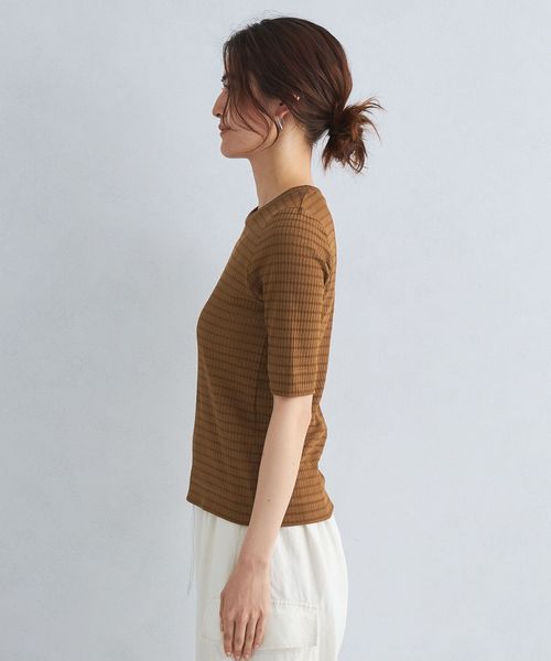 表情のあるシャドーボーダー素材のプルオーバーカットソー。