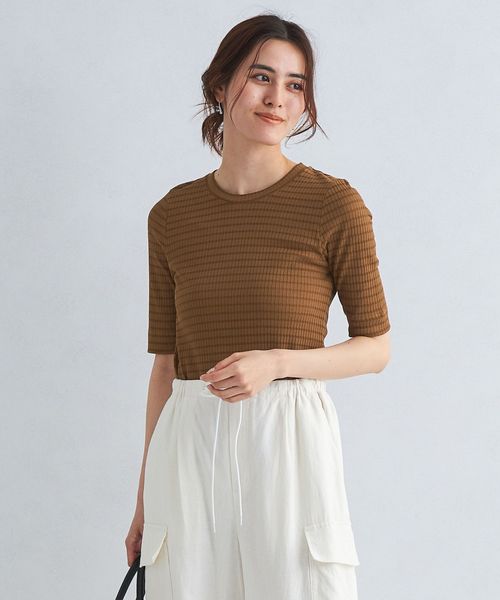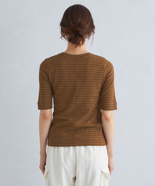 シャドーボーダー テレコ 5分袖 プルオーバー カットソー ―汗染み防止―