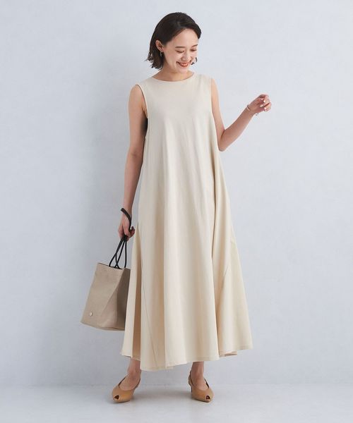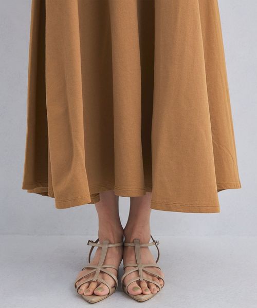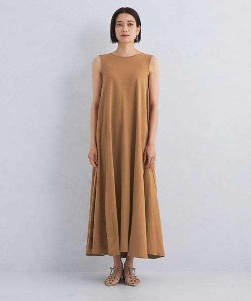 裾にかけて広がるフレアシルエットがポイントのワンピース。