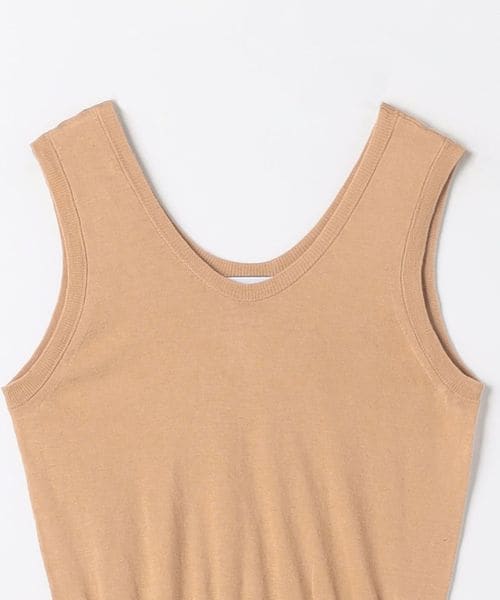 ネックの開き具合が女性らしいノースリデザインのニットプルオーバー。