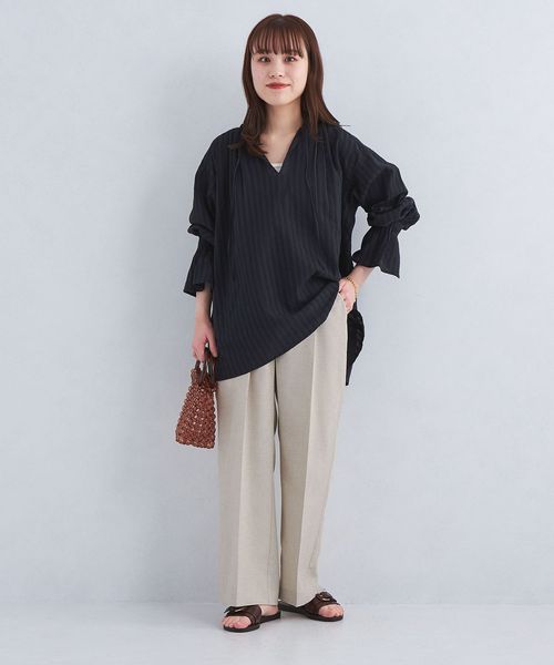 センタープレス入りできちんと見えしつつ、ウエストはゴム仕様でイージーなはき心地なのも嬉しいポイント♪