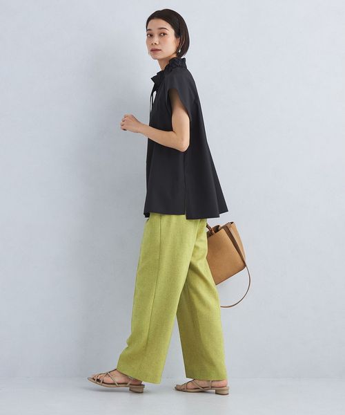 フラットサンダルはもちろん、ヒールとも相性良く着用いただける万能パンツです。