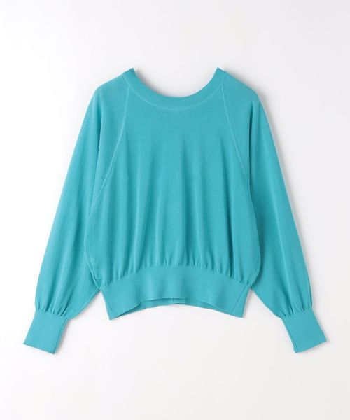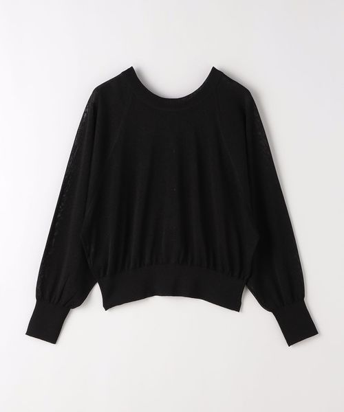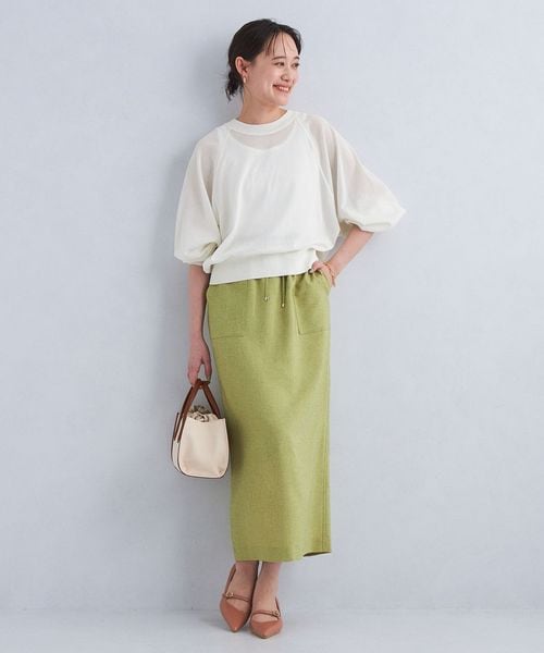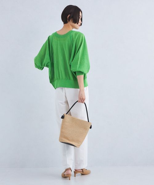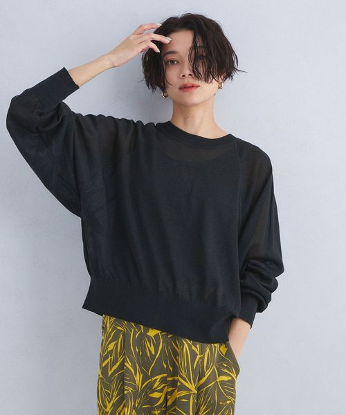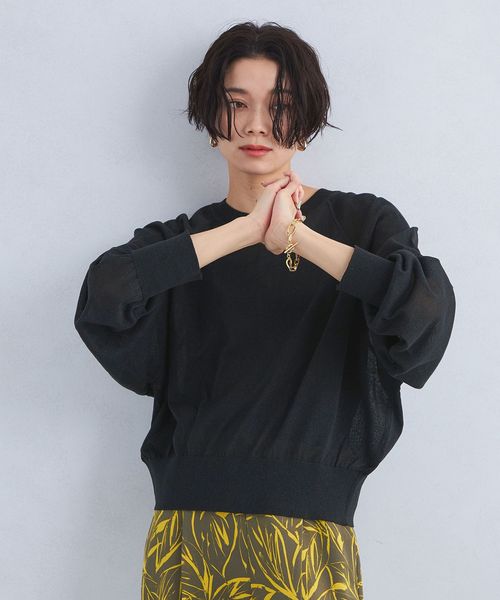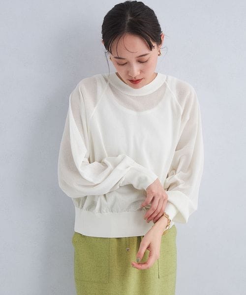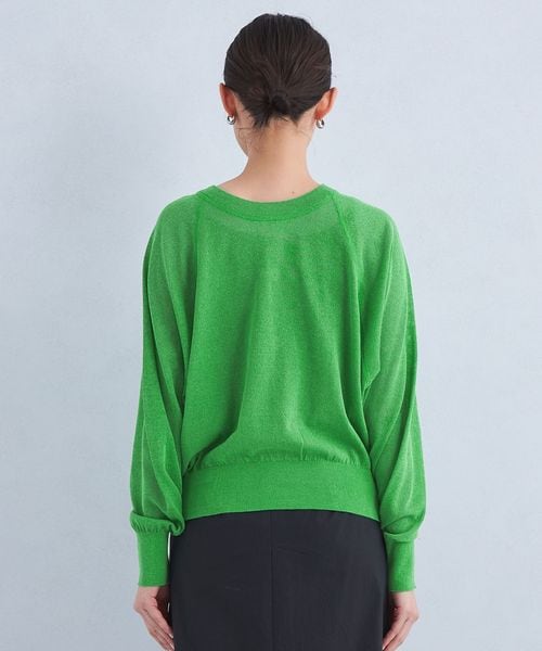 紙とポリエステルをミックスした糸を使用し、程よく透け感のある編地に仕上げたハイゲージニット。