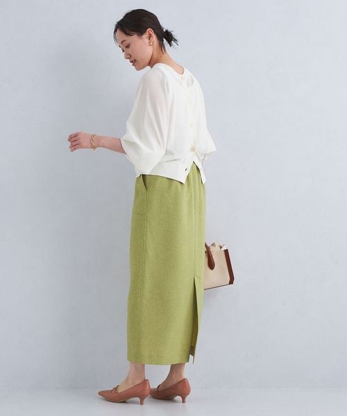 ボタンを開けてカーディガンとしても、ボタンを後ろにしてプルオーバ―としても、前後2WAYで着回せるデザインが魅力。