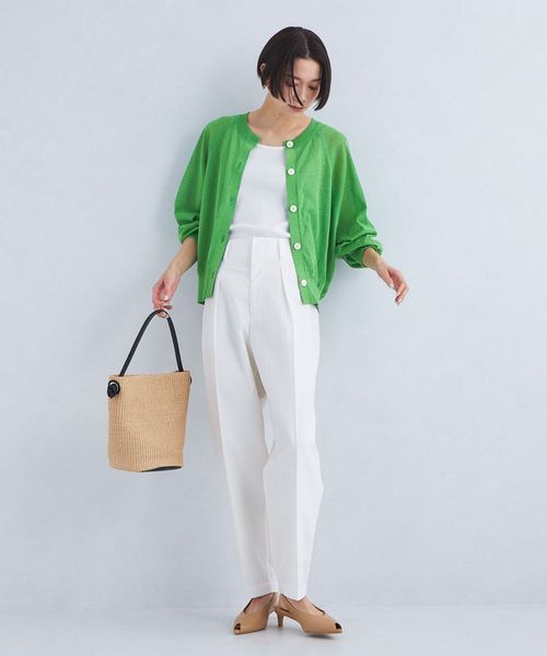 合わせるボトムを選ばない絶妙な着丈の着回しカーディガン。