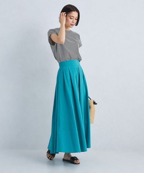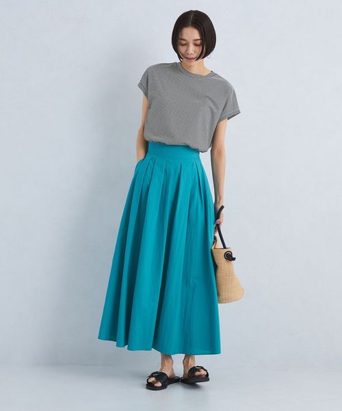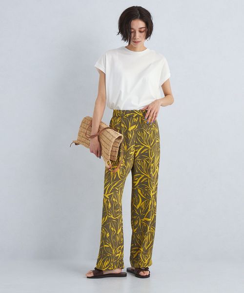 トレンドのカーブパンツや華やかな柄ボトムとの合わせもおすすめです。