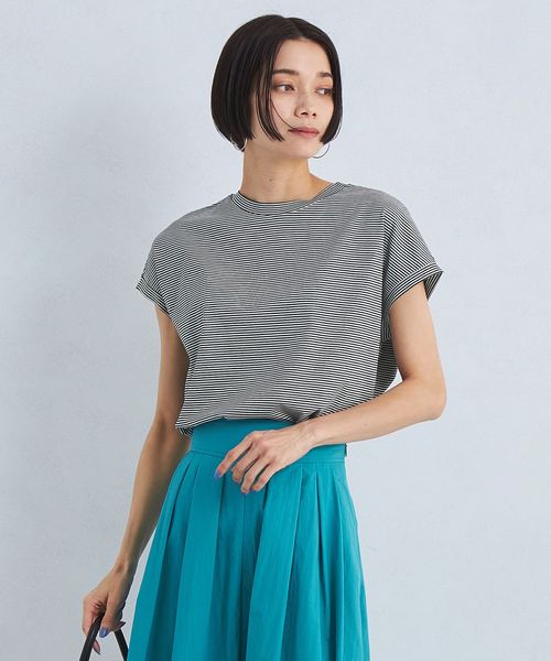 肩から二の腕までのラインを包み込んでくれるフレンチスリーブのTシャツ。