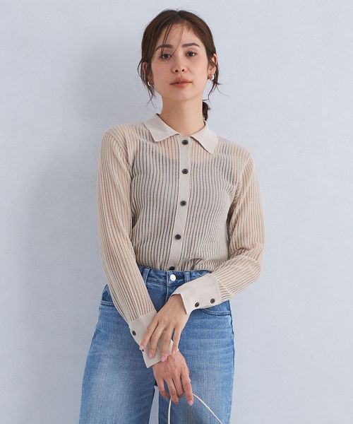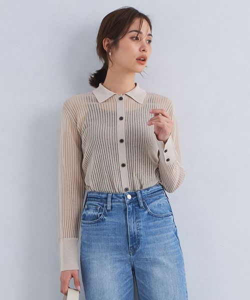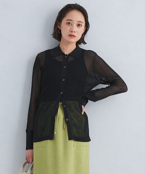 メッシュ素材の透け感が今年らしいシャツカーディガン