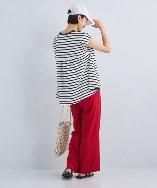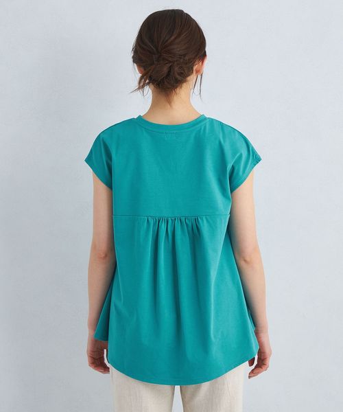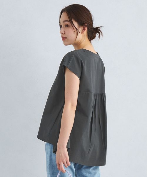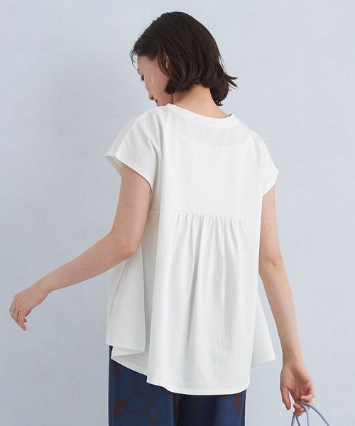 バックのギャザー×ペプラムシルエットが目を惹くTシャツ。