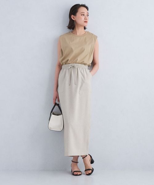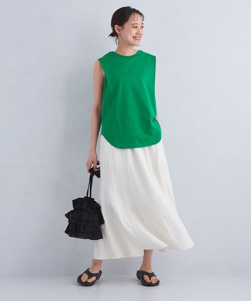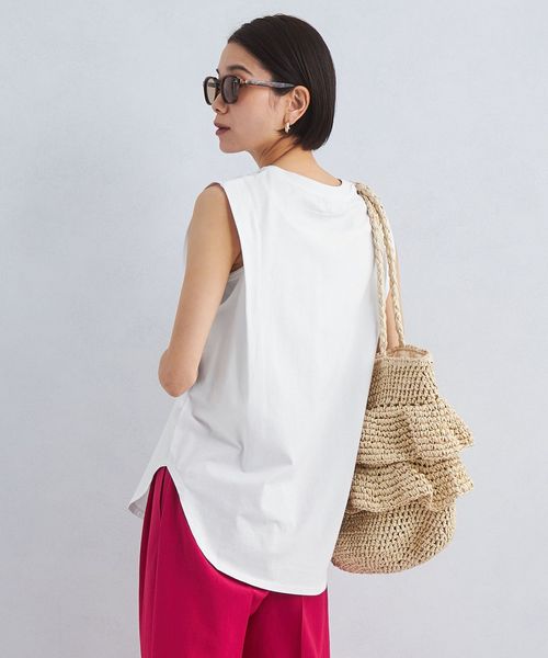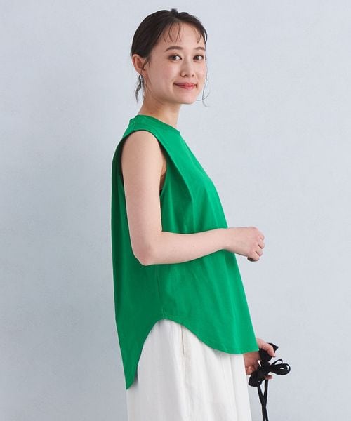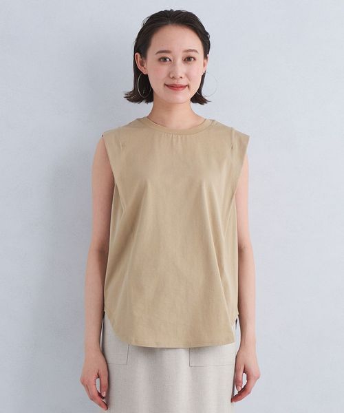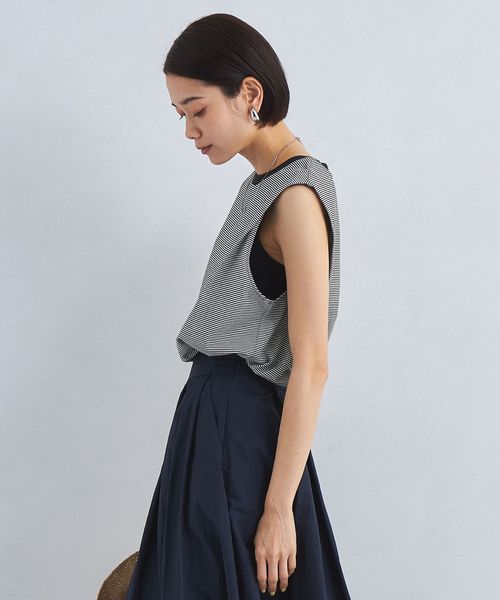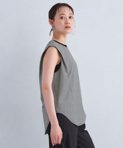 肩先までかかるノースリーブデザインで、一枚での着用も可能です◎