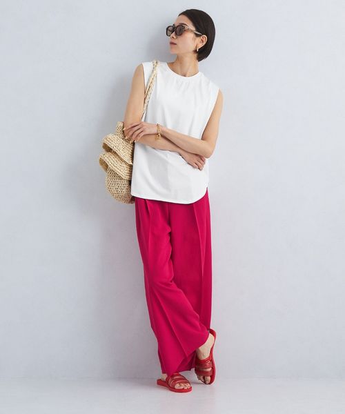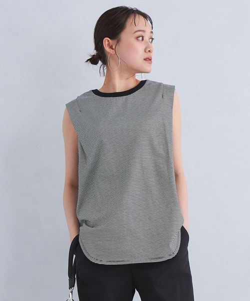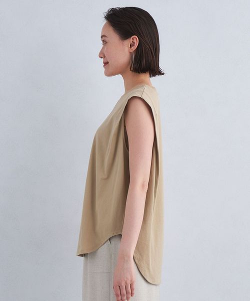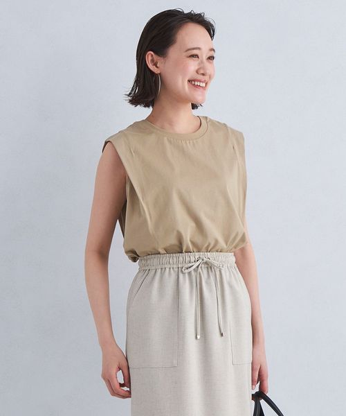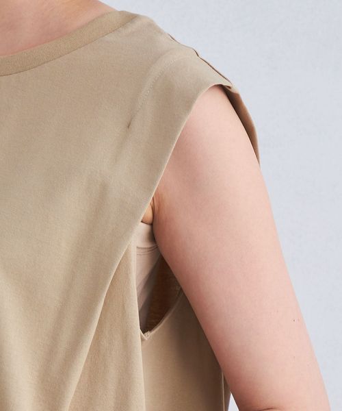 肩のタックデザインがポイントのノースリーブTシャツ。