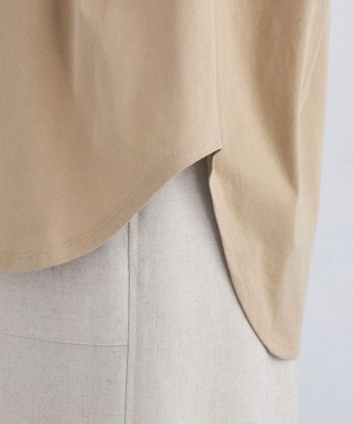 デニムはもちろん、ワイドパンツやフレアスカートなどどんなボトムとも合わせやすいシンプルなデザイン。