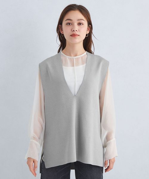 やや深めのVネックデザインで、インナーを選ばないのも嬉しいポイントです。
