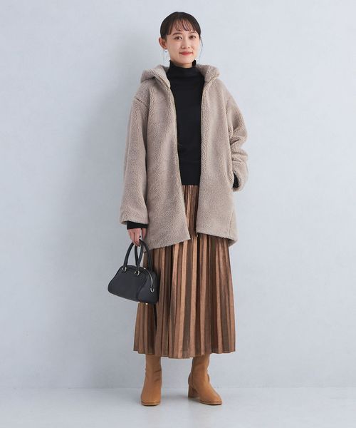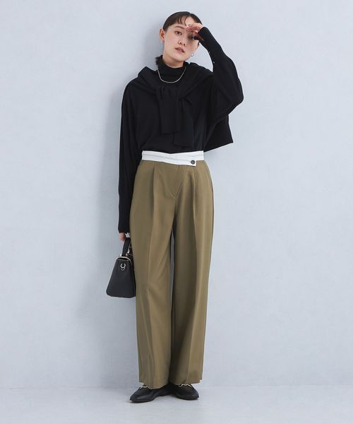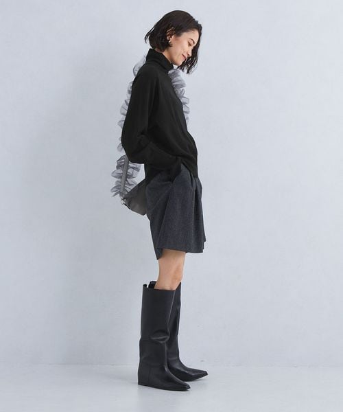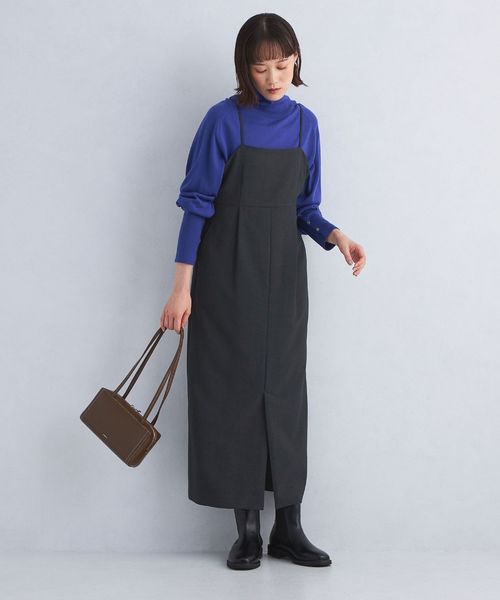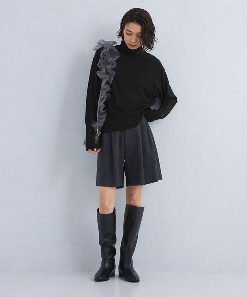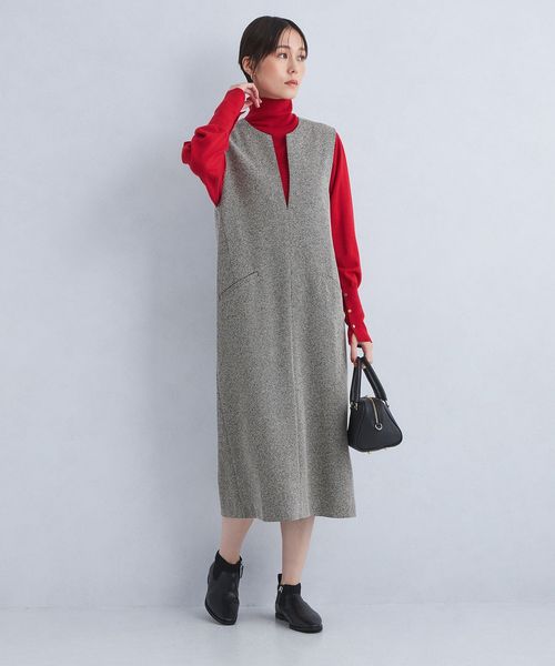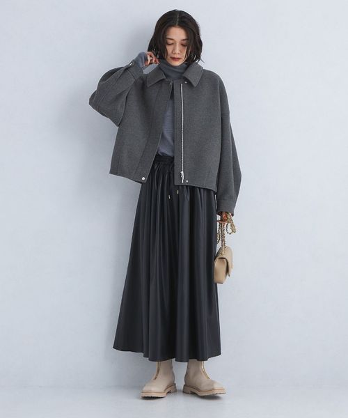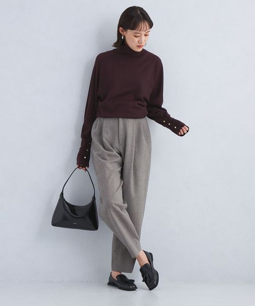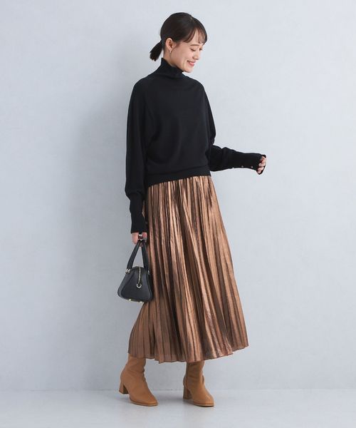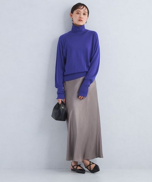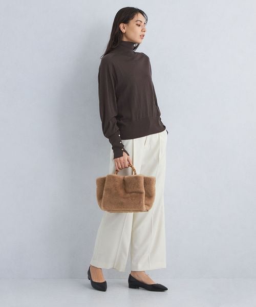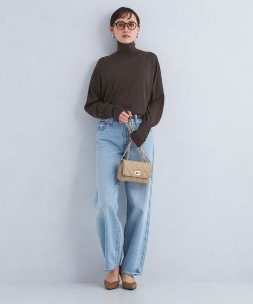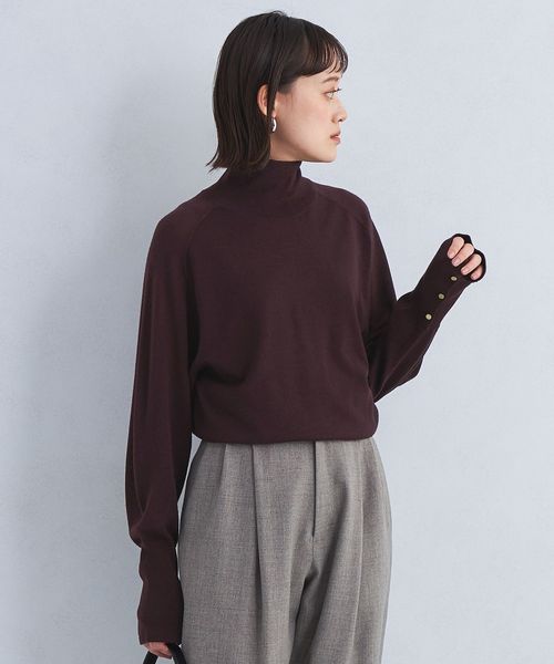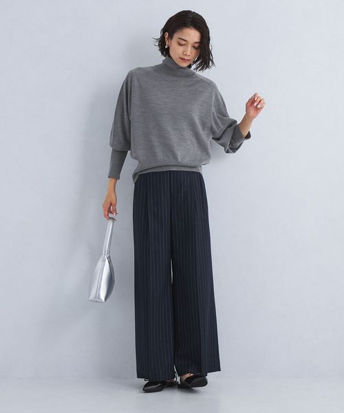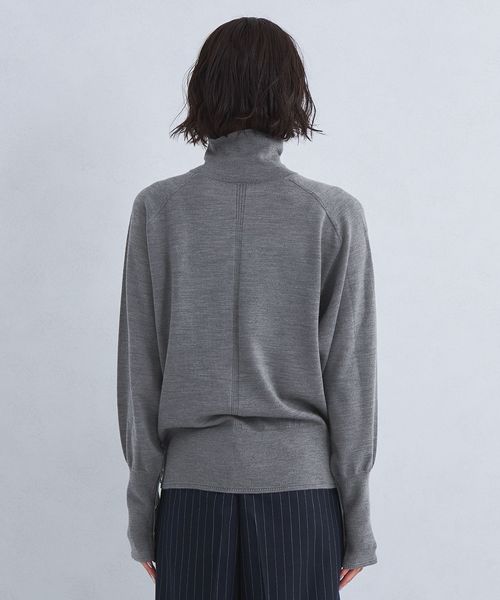 ほどよく首からはなれたニュアンス感のあるハイネックデザインがこなれた雰囲気です。