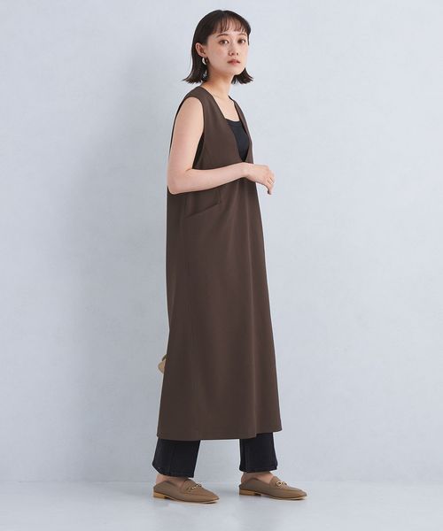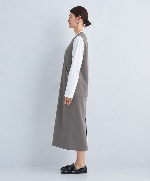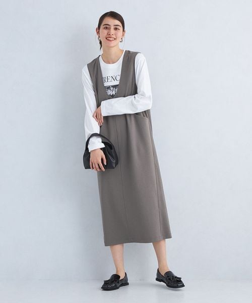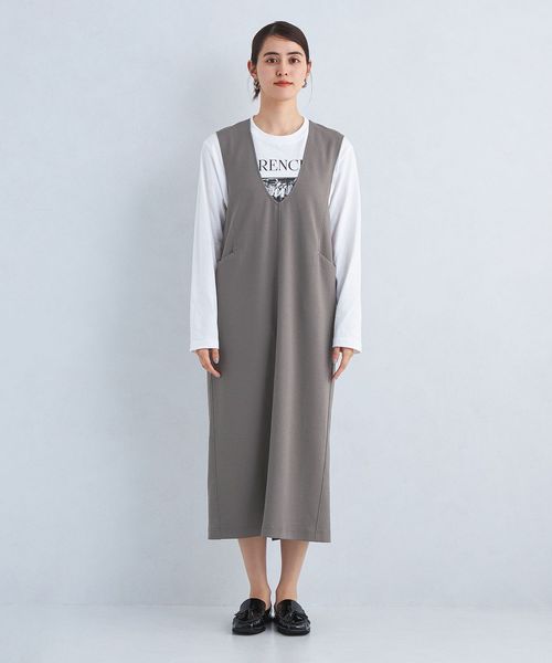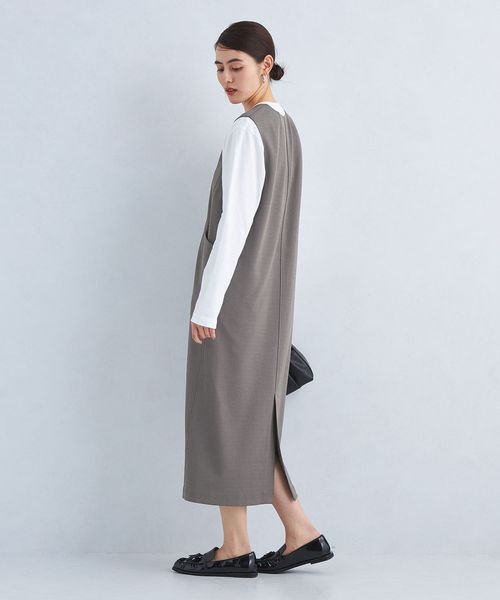 すっきり見えするIラインシルエットが上品な印象のジャンパースカートです。