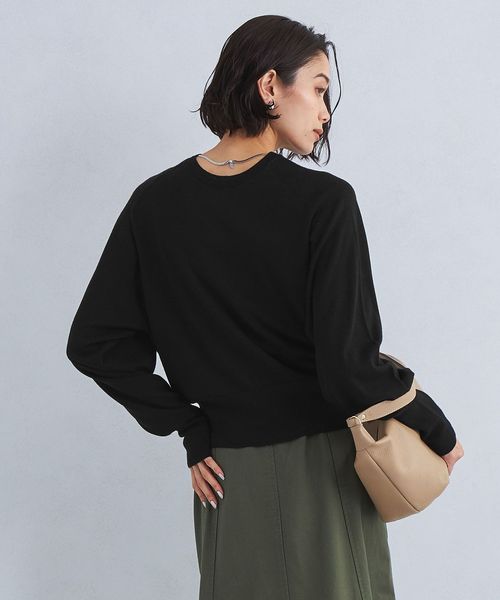 合わせるアイテム次第で、きれいめにもカジュアルにも着こなせる着回しニット。