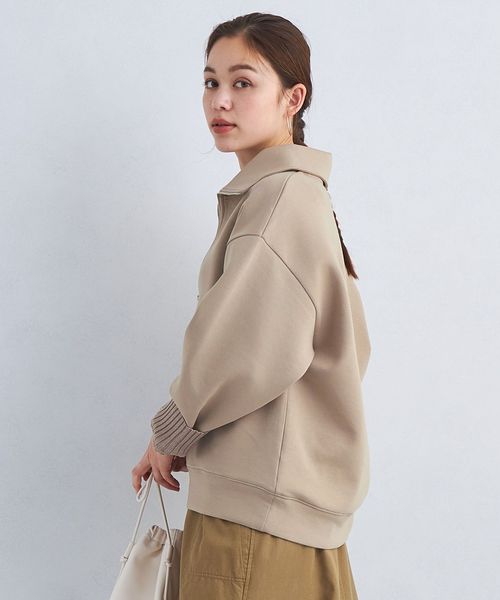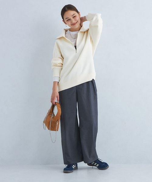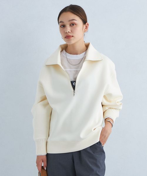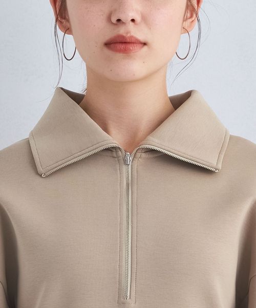 襟元はトレンドのハーフジップで着こなしの鮮度が上がるデザインに仕上げました。