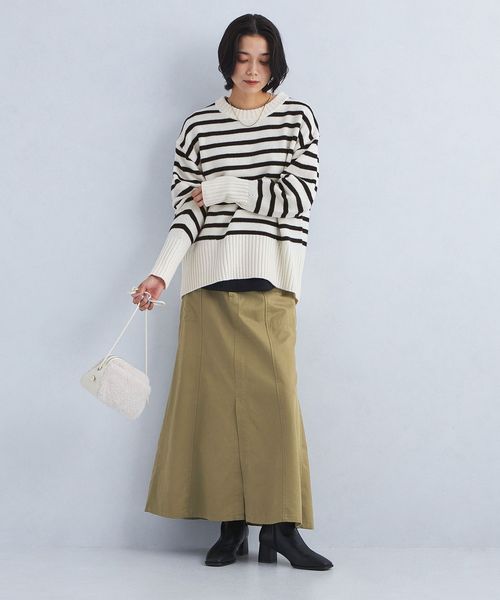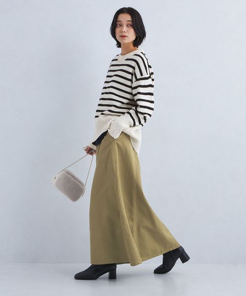 ボーダートップスと合わせたカジュアルスタイルはもちろん、シャツやハイゲージニットと合わせたきれいめな着こなしも◎