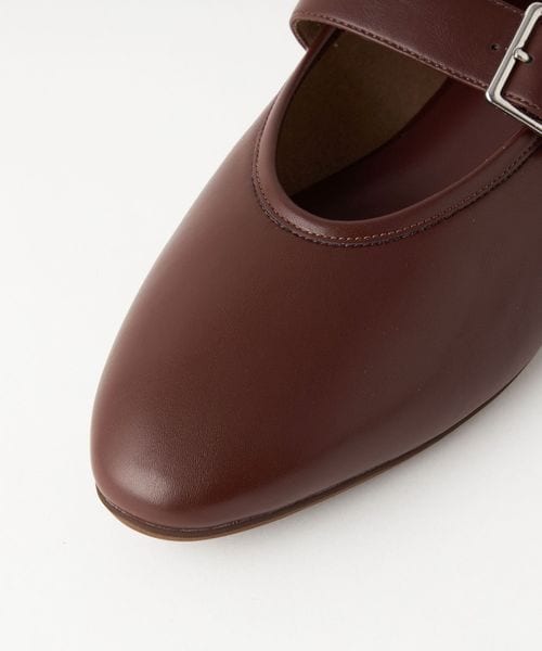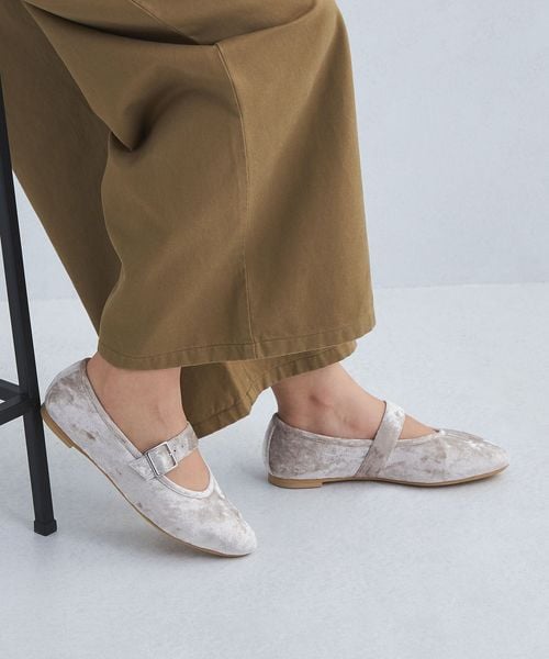 スタイリングしやすいきれいめトレンドのストラップフラットをモダンにデザインしました。