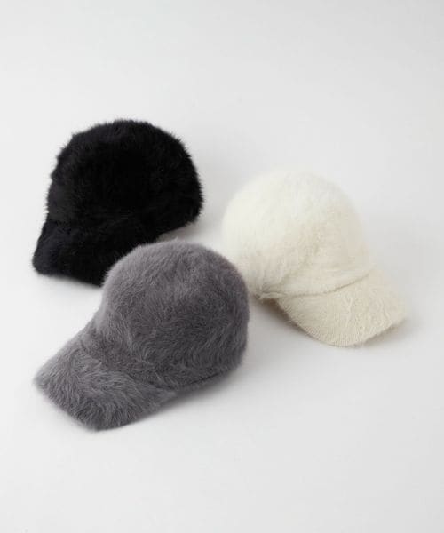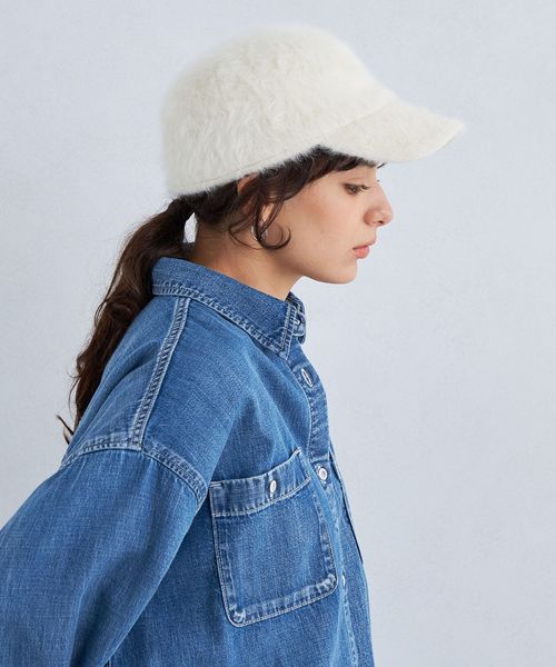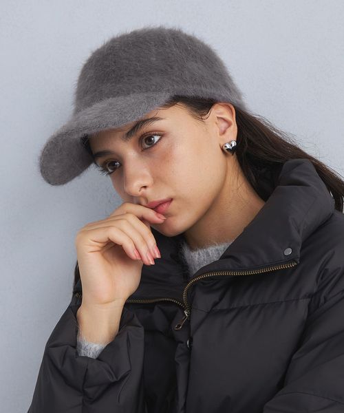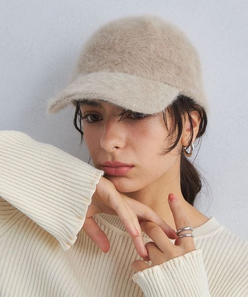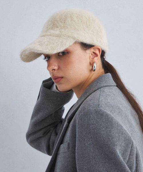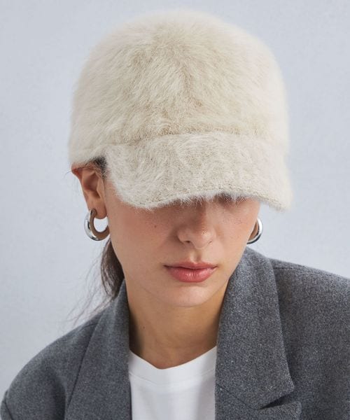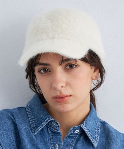 キャップにはめずらしい、ほわほわ感のあるヘアリー素材。