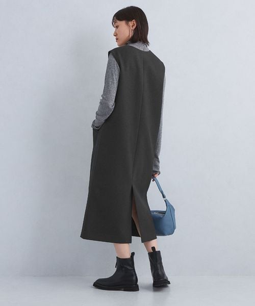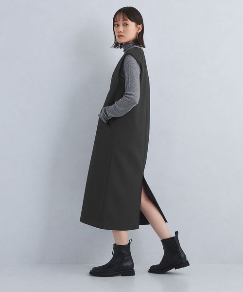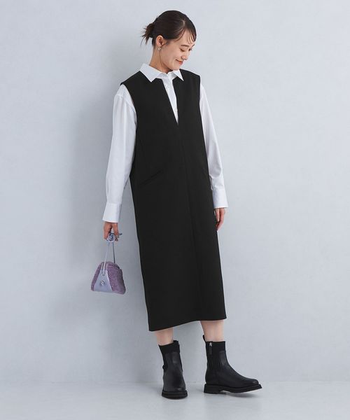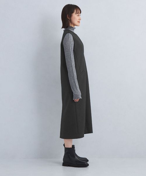 深めのキーネックデザインが大人な雰囲気のジャンスカ。