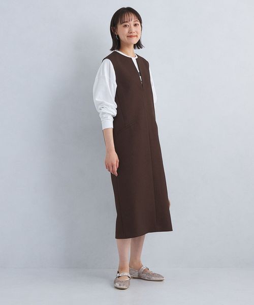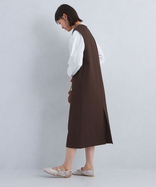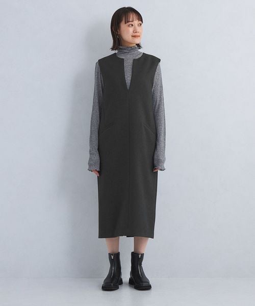 こなれた着こなしが叶うキーネックのジャンパースカート