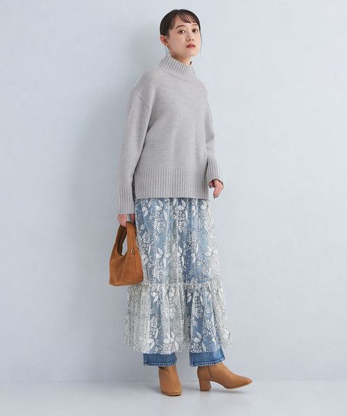 デニムからサテンスカートまで、合わせるボトムスを選ばない着回しニット。