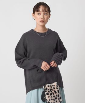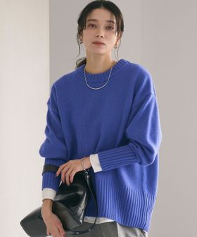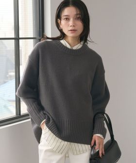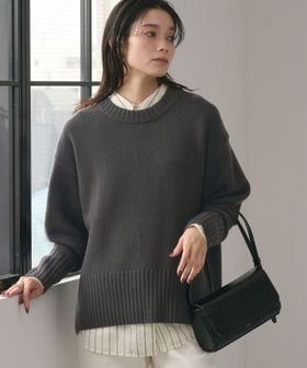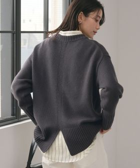着丈に前後差をつけることで、スタイリングのバランスが取りやすいよう仕立てたクルーネックニット。