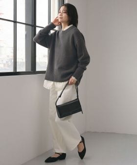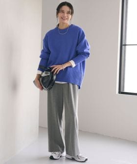 デニムからサテンスカートまで、合わせるボトムスを選ばない着回しニット。