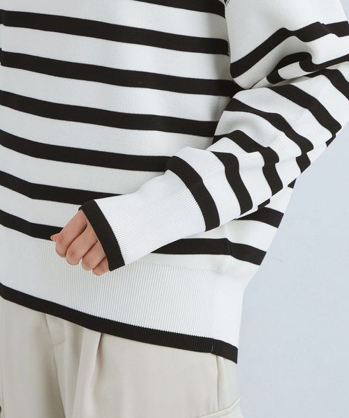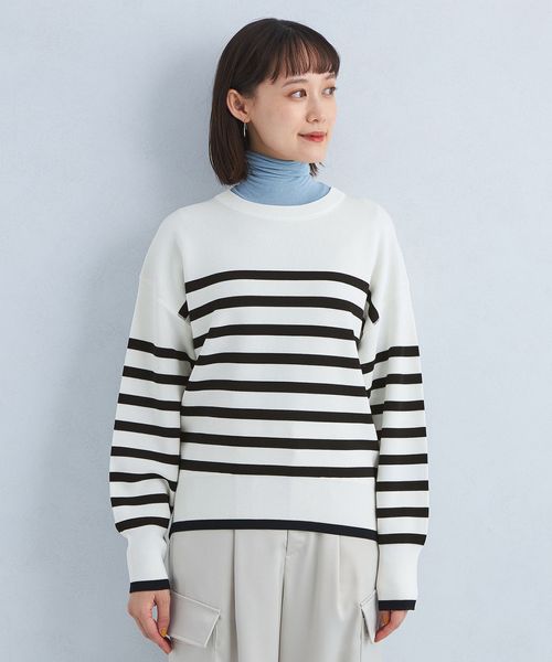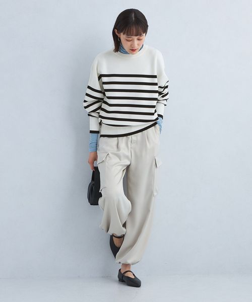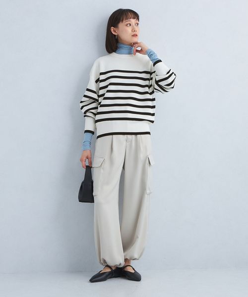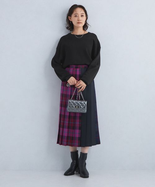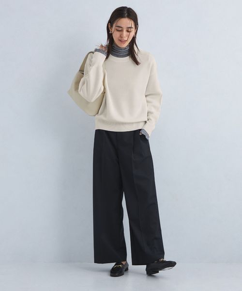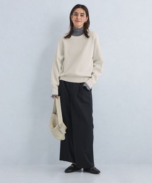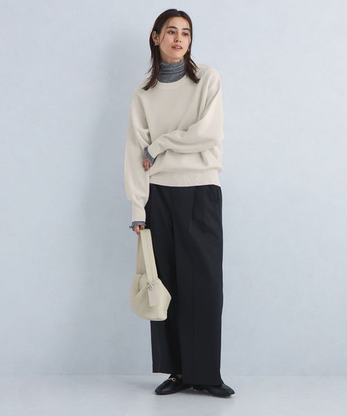 パンツ、スカートどちらともバランスよく着こなせる着回しニット。
