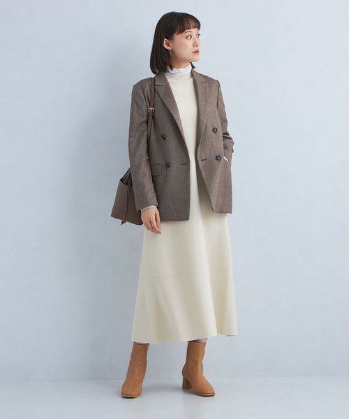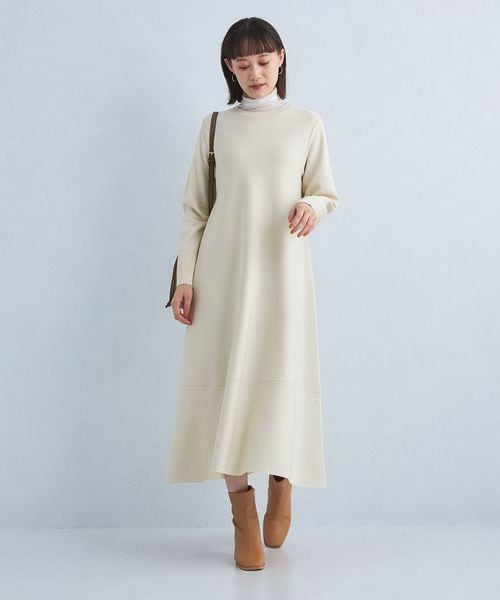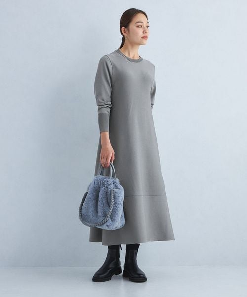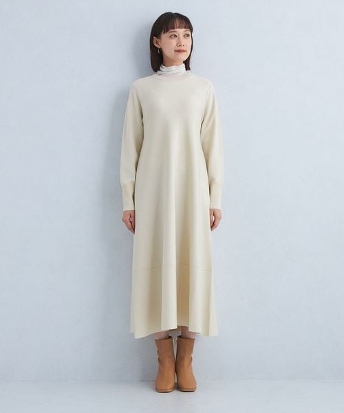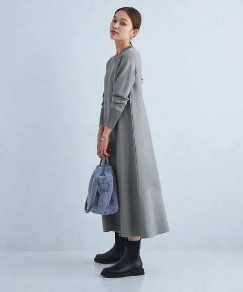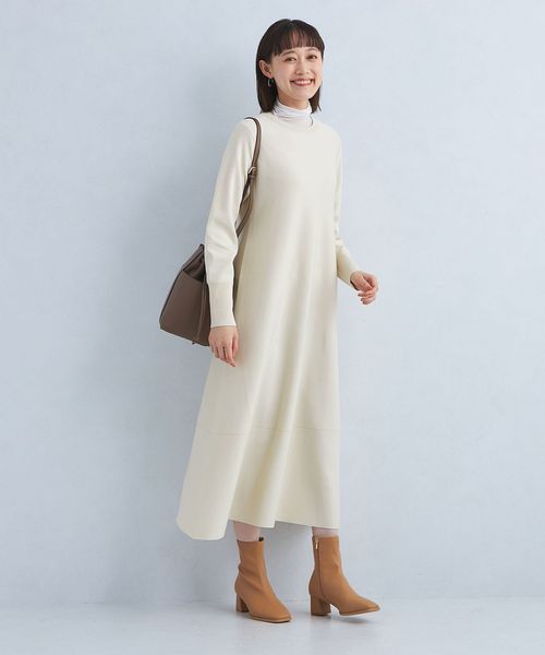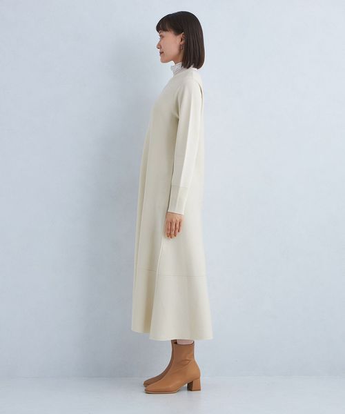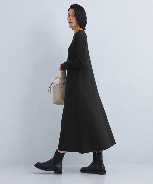 裾にかけて立体的に広がるシルエットが目を惹くニットワンピースです。