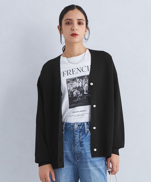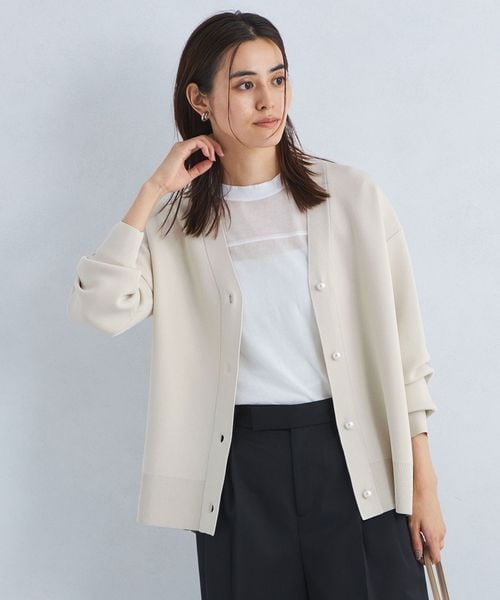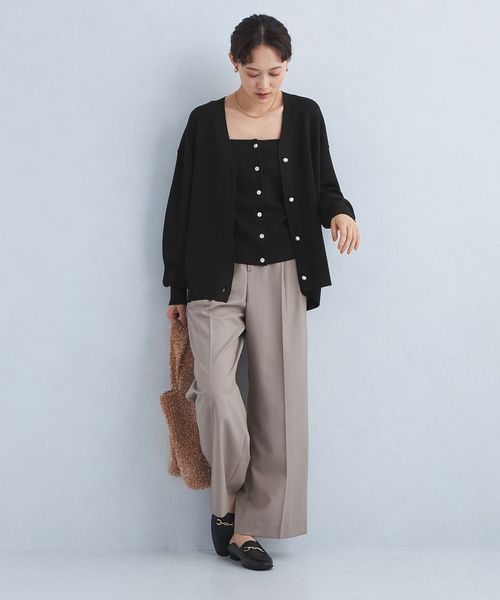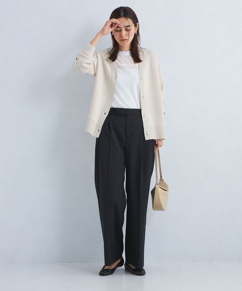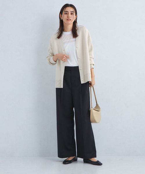パンツにもスカートにも合わせやすい丈感で、季節の変わり目から重宝する着回しアイテム。