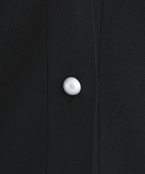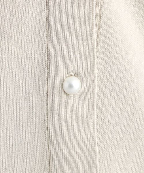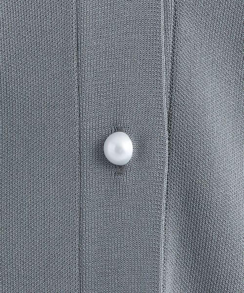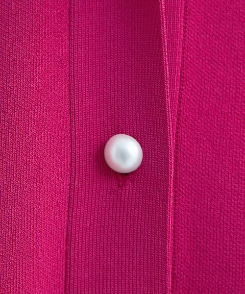 ツヤのある素材感と大きめのパール調ボタンがフェミニンムードを引き立てます。