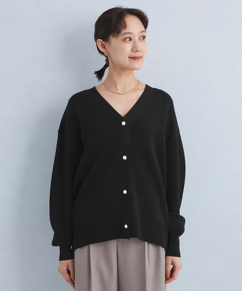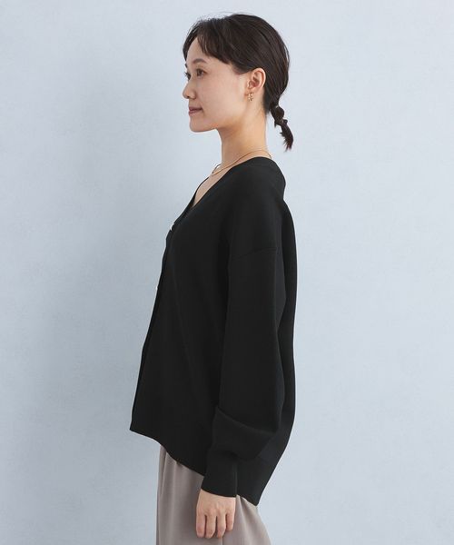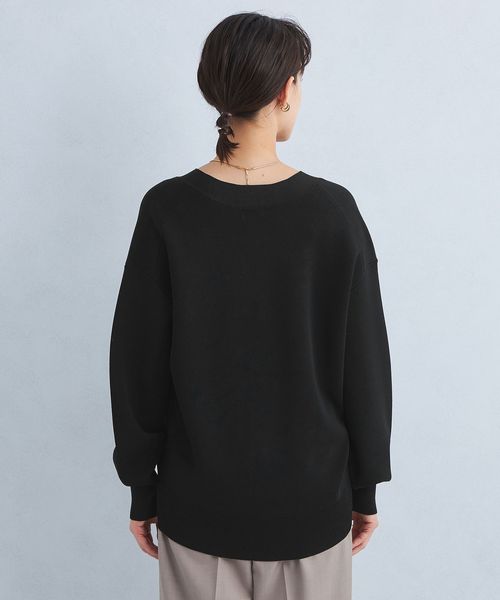 毛羽のないクリアな表面感でキレイ見えするニット。