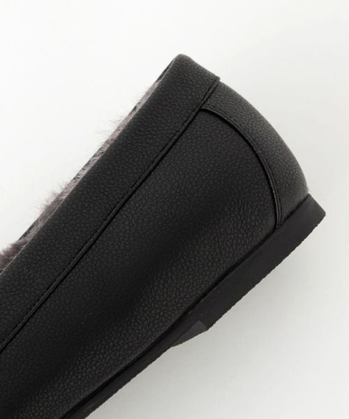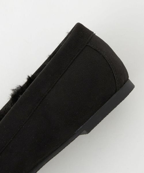 モコモコしがちなフェイクファーのシューズもスッキリ見えします。