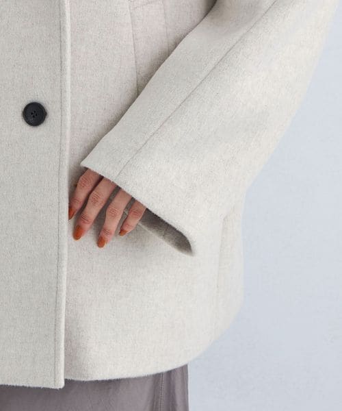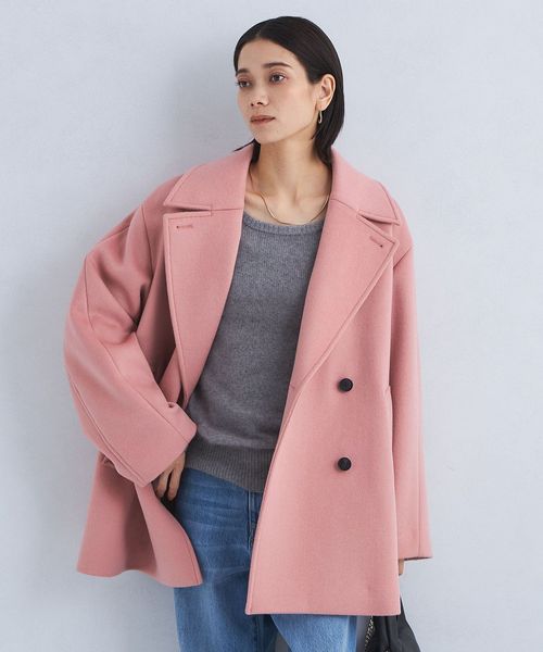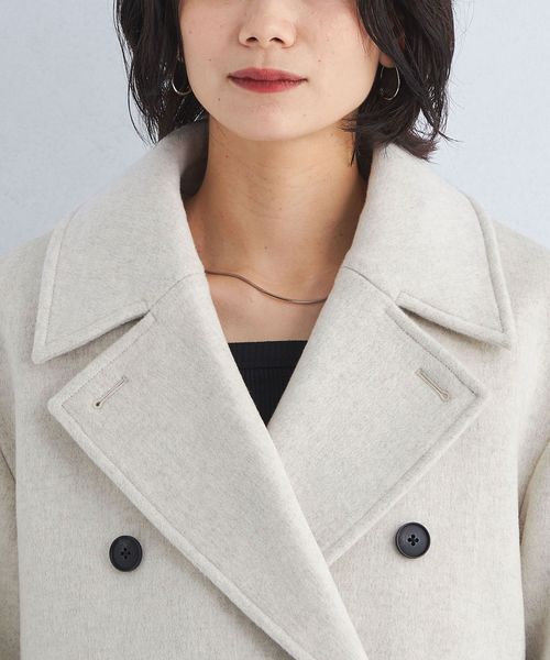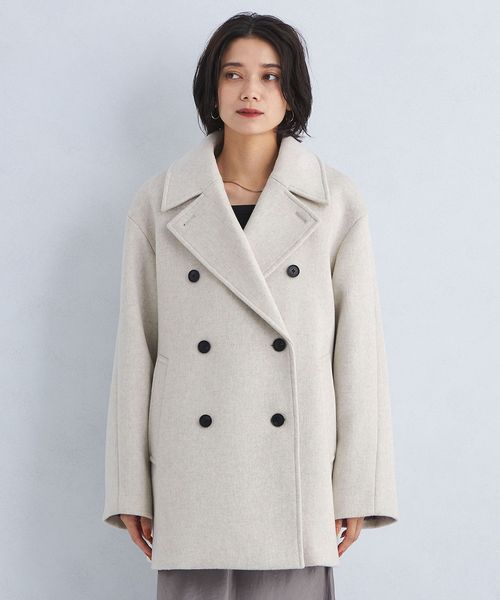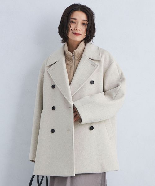 マニッシュな印象のピーコートを、フェミニンな雰囲気に仕上げました。