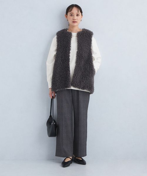 フリルシャツと重ねたり、上からボアベストを羽織ったり、レイヤードもスタイルも楽しめます。