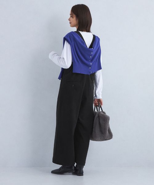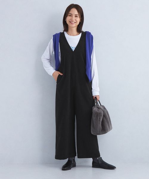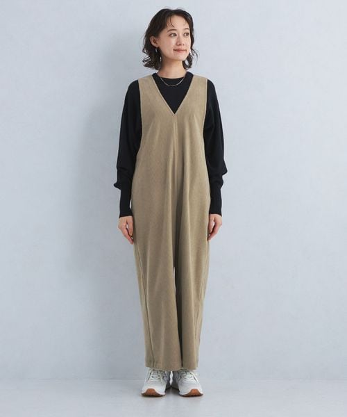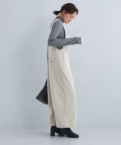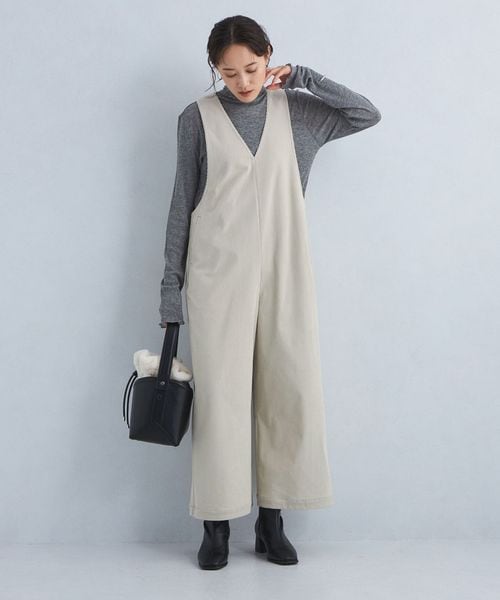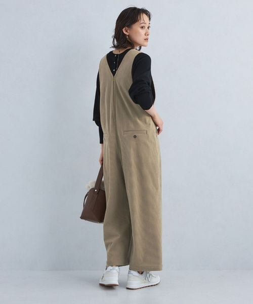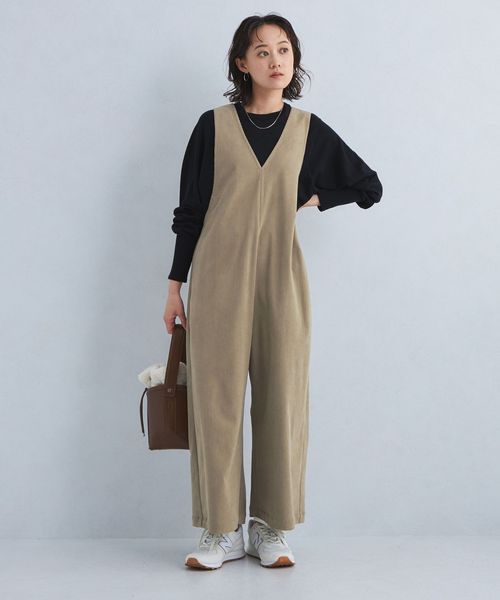広がりすぎないストレートワイドシルエットのオールインワン。