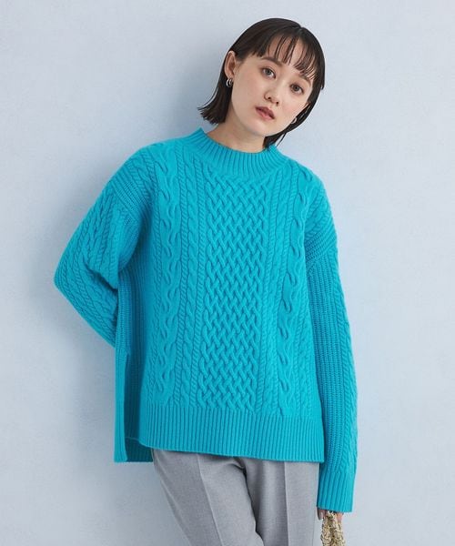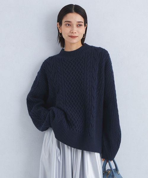 大きめのアラン柄が目を惹くニットプルオーバー。