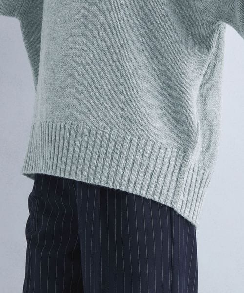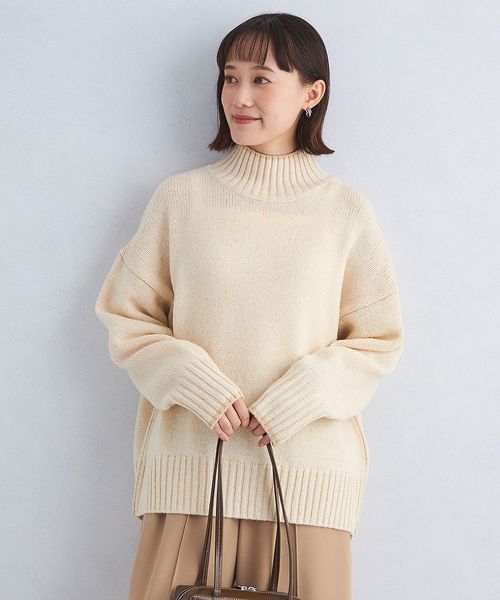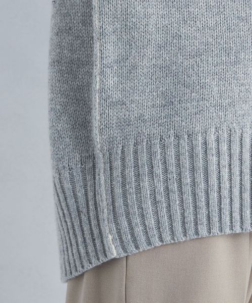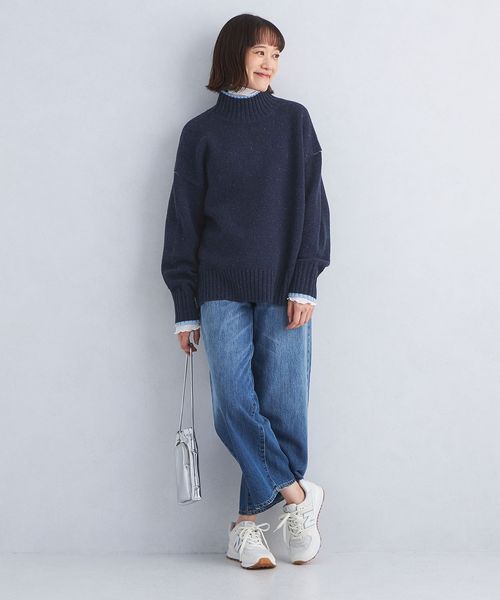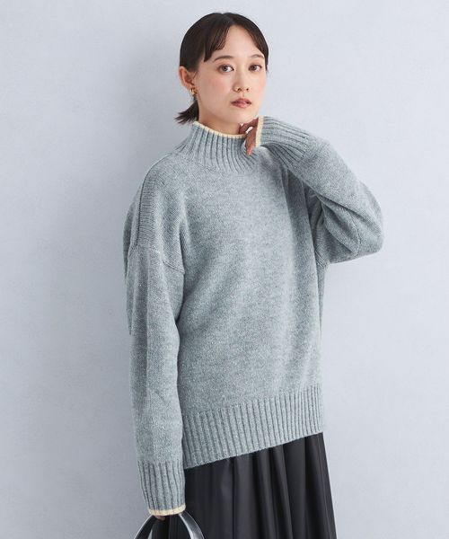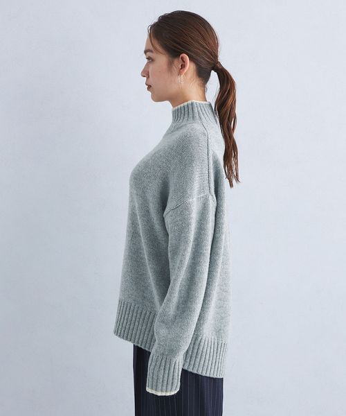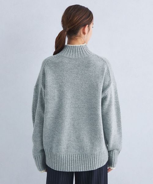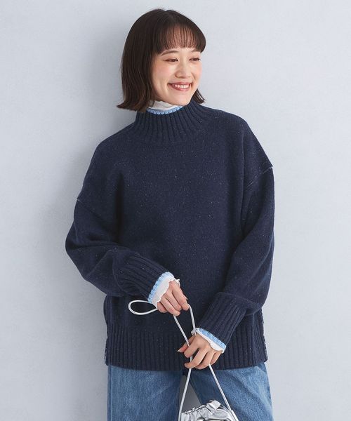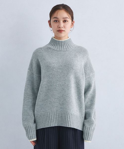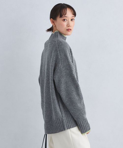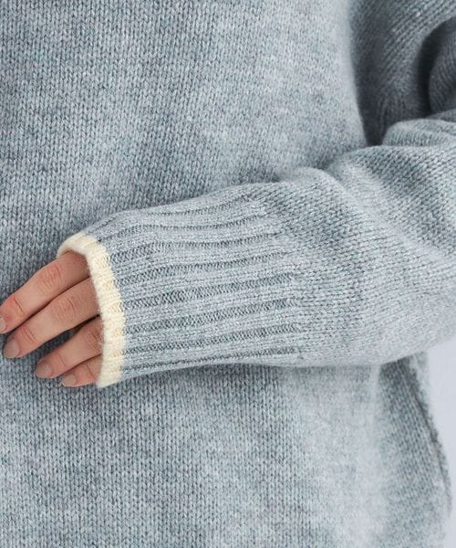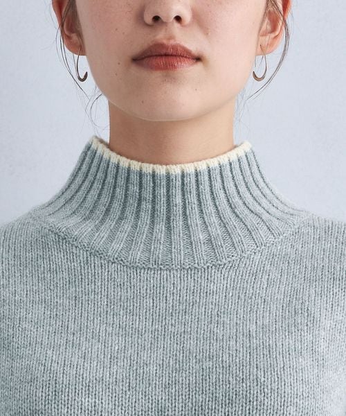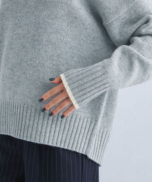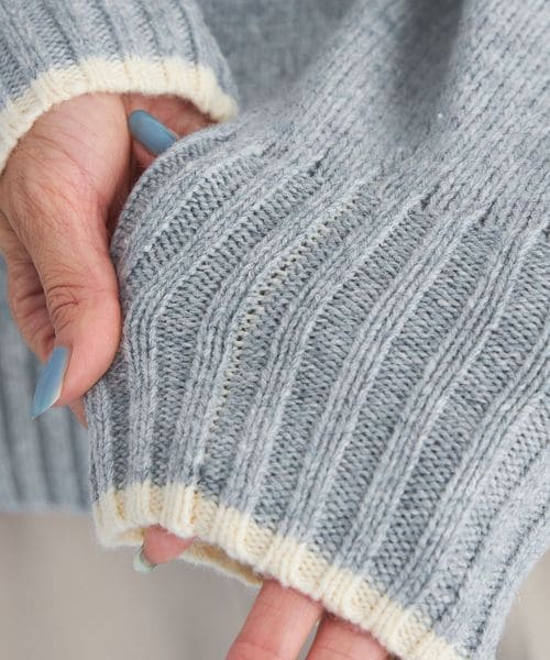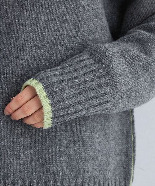 カラーネップ×ネックラインと袖口の配色デザインが目を惹くニット。