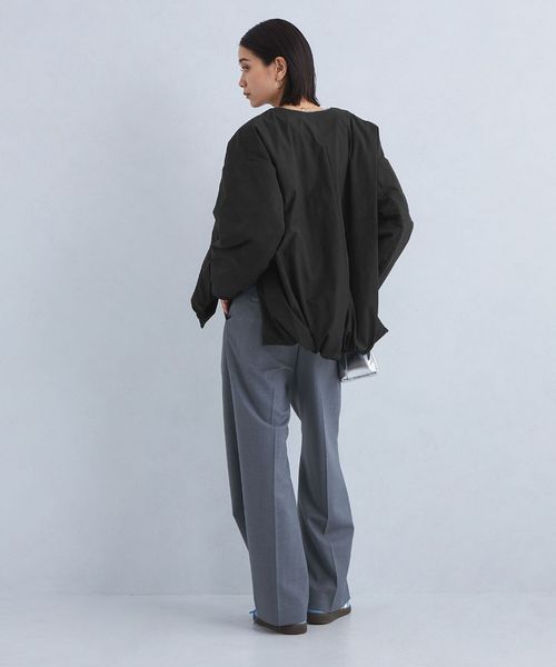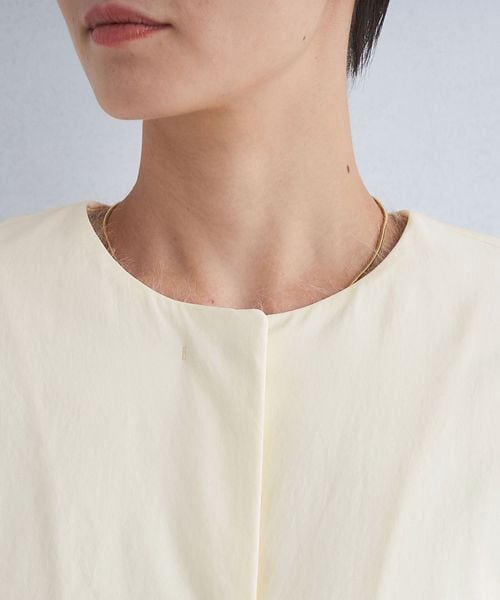 裾はギャザーやタックを入れてボリューム感を持たせながらも、ノーカラーですっきりと仕上げました。
