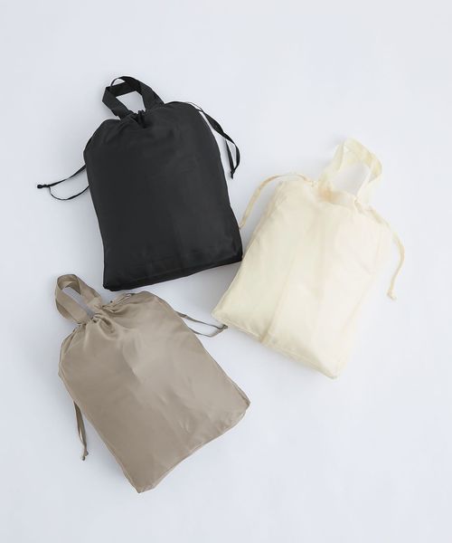 コンパクトにまとめて持ち運びもできる小さなドロストバッグ付きも嬉しいポイント。