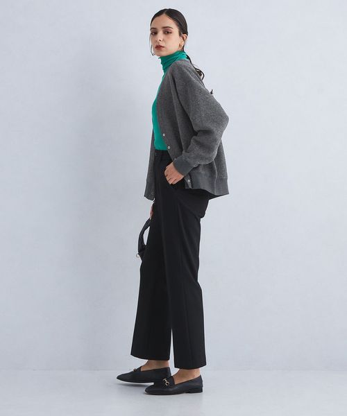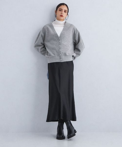 コクーンシルエットを活かして、ワイドボトムやフレアスカートとの組み合わせがおすすめです。