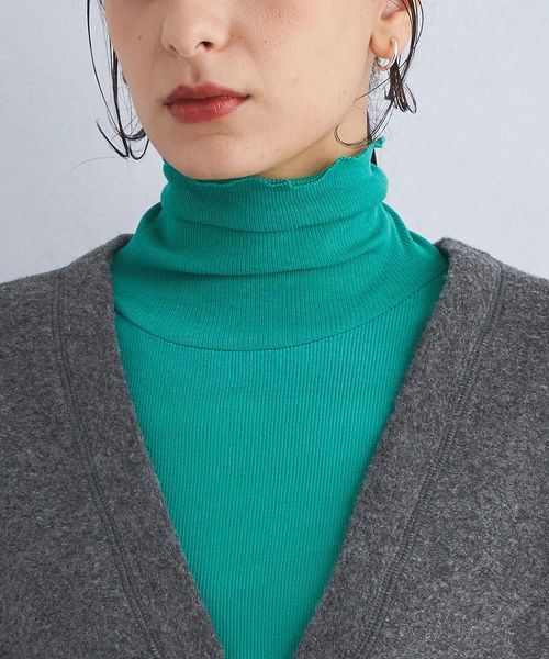 顔まわりをすっきりと見せてくれる深めのVネックで仕上げました。