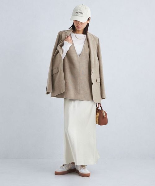 同素材のジャケットの下に重ねて、今年らしいレイヤードスタイリングを楽しんでいただけます。