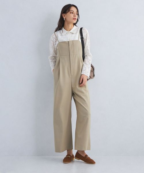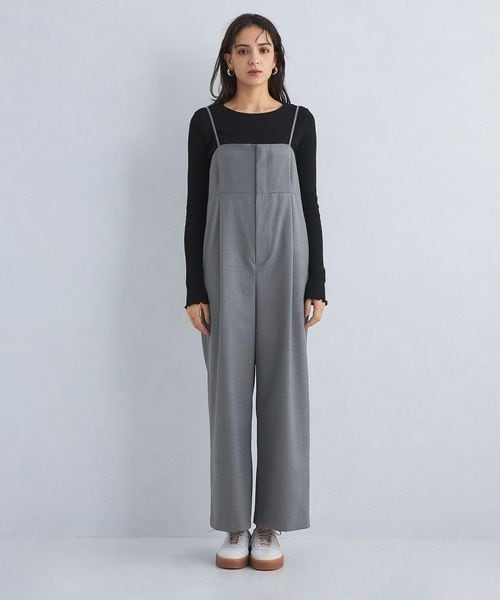 すとんとしたシルエットが魅力のベアトップデザインのオールインワン。